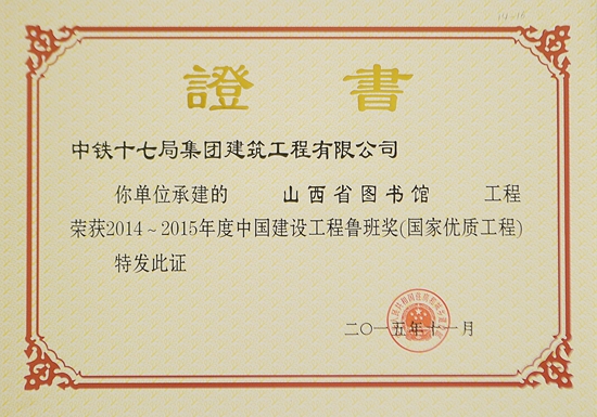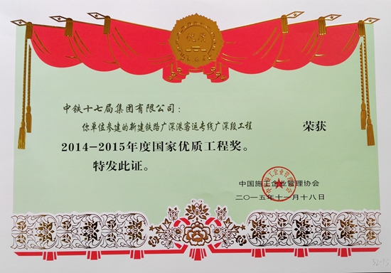 • 建筑業資質: 鐵路工程施工總承包特級 建筑工程施工總承包特級 市政公用工程施工總承包特級 公路工程施工總承包特級 水利水電工程施工總承包一級 橋梁工程專業承包一級 隧道工程專業承包一級 公路路基工程專業承包一級 鐵路鋪軌架梁工程專...